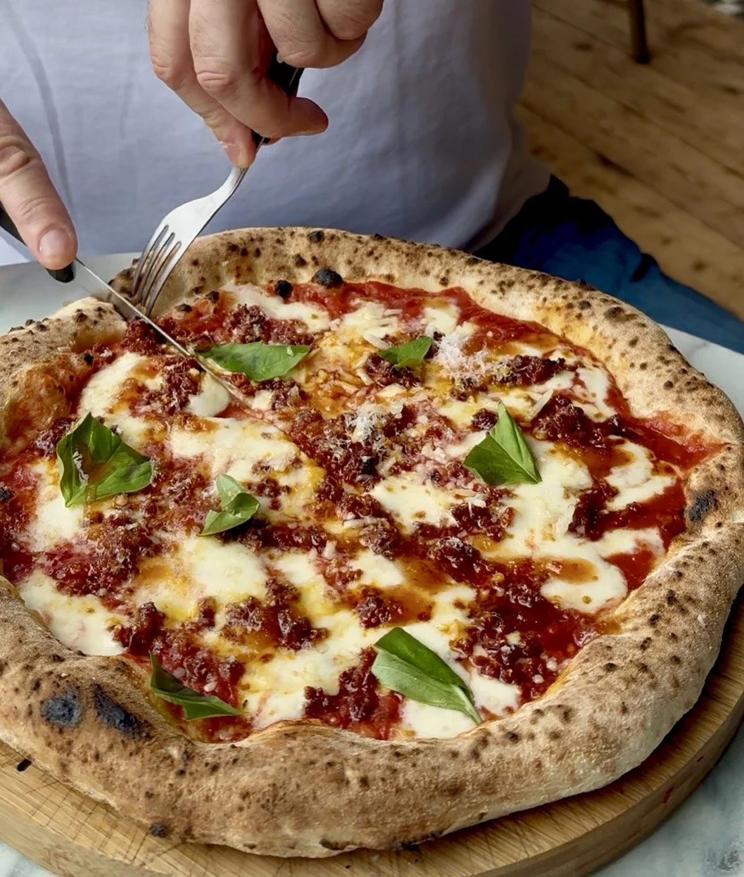 We’re a small restaurant that serves delicious Neopolitan-style pizzas, freshly made on the premises and cooked in our traditional pizza oven.
